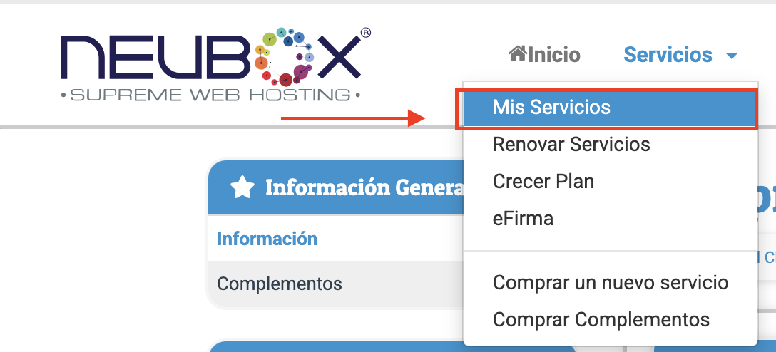 - Inicia sesión en tu Panel de Clientes de NEUBOX.