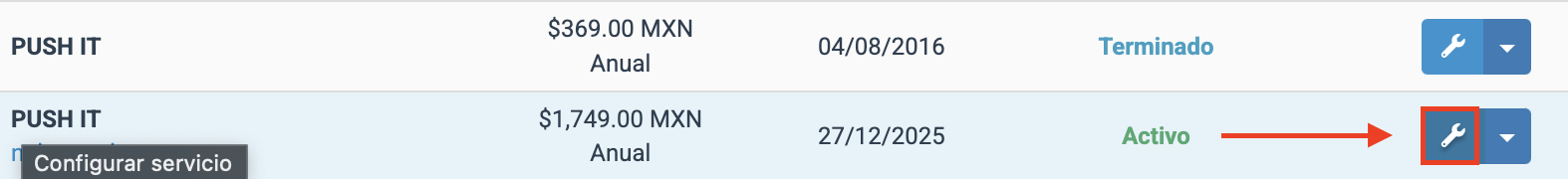 - En el menú principal, haz clic en Servicios y selecciona Mis servicios.