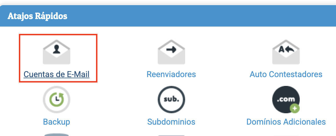 - En el apartado Atajos Rápidos, selecciona la opción Cuentas de E-mail.
