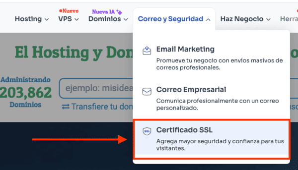- Ingresa el dominio al que aplicarás tu Certificado SSL