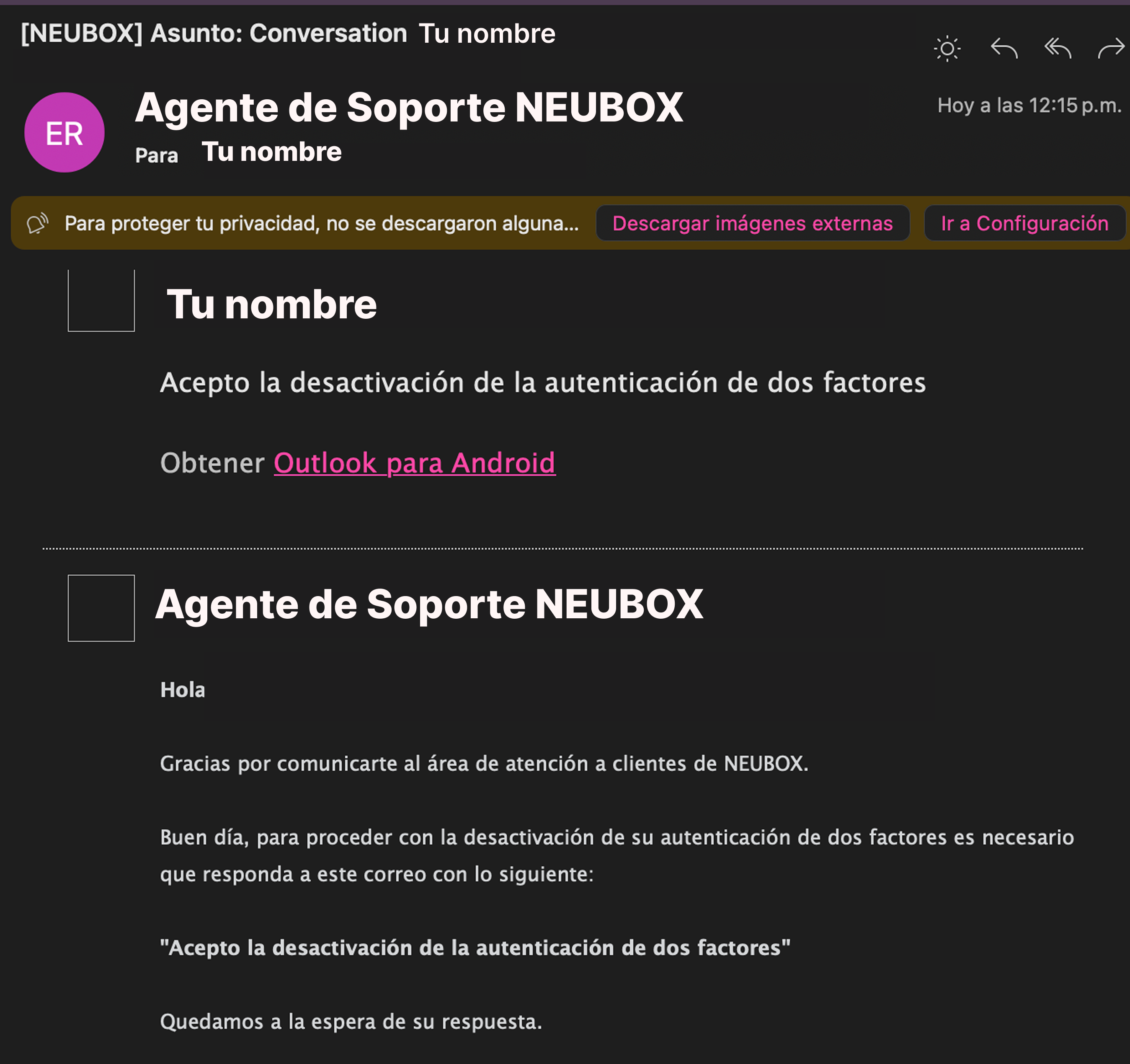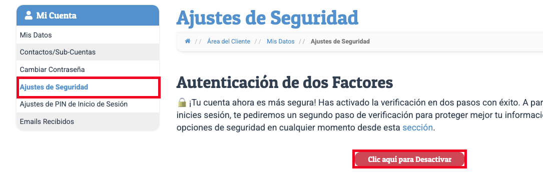 Una vez validado, se quitará el 2FA y podrás ingresar nuevamente.