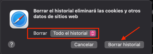 - Selecciona el rango de tiempo y haz clic en Borrar historial.