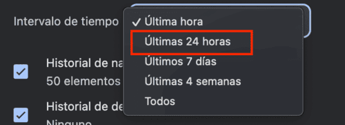- Elige el intervalo de tiempo (por ejemplo, “Últimas 24 horas” o “Todo el tiempo”).