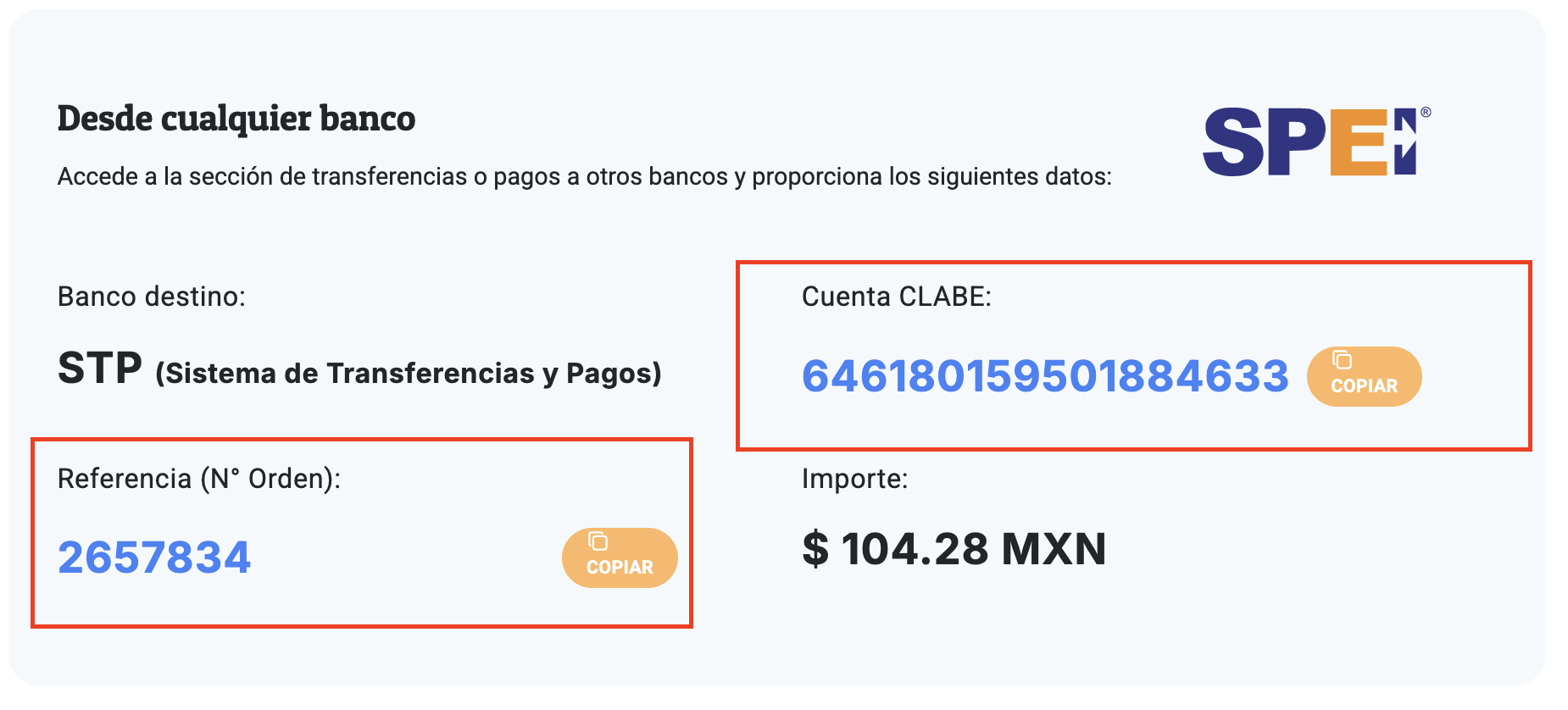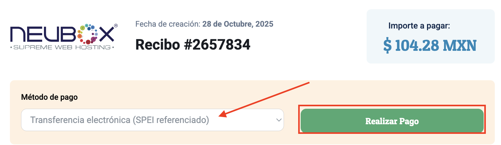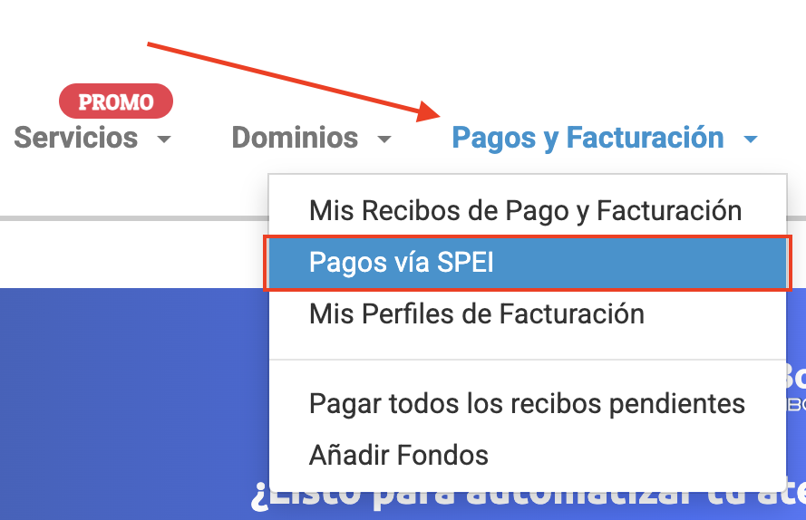 En tu panel, dentro del menú Pagos y Facturación, encontrarás la sección Pagos vía SPEI.