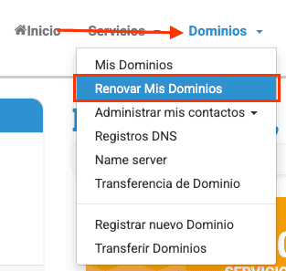 - En la sección de Dominios selecciona “Renovar Dominios”.