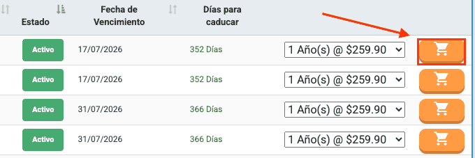 - Elige el periodo de renovación: desde 1 año hasta 9 años.