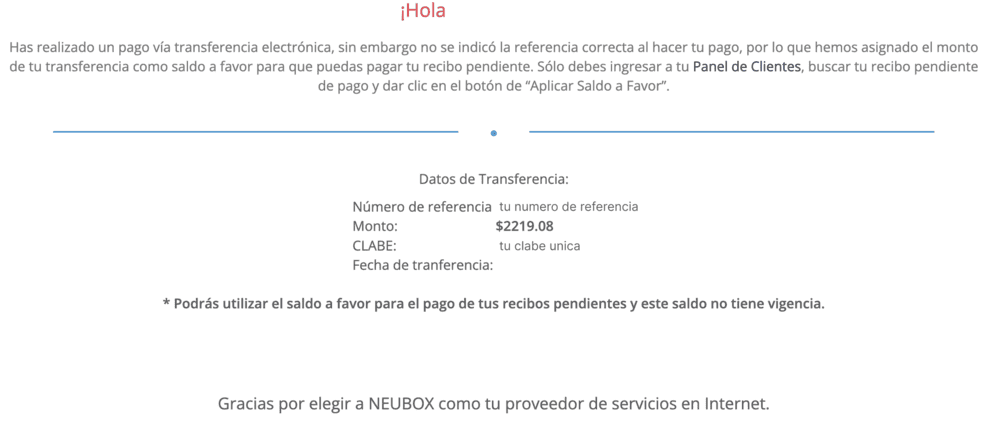 Si tu CLABE es correcta pero el número de referencia no coincide con el recibido generado por NEUBOX, el sistema no podrá asociar el pago automáticamente.